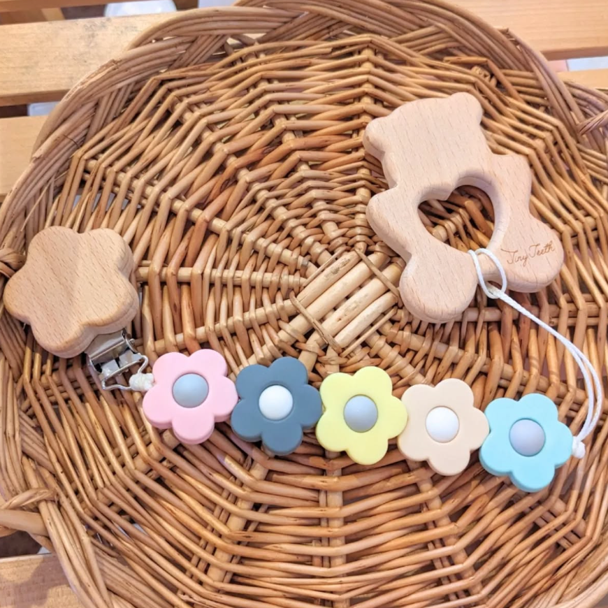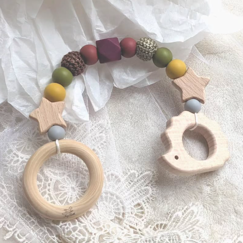お好みのデザインで作れるおしゃれで実用的な歯がためです。名前やイニシャルが入れられます。