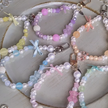 好きなビーズやパーツを選び、お名前を入れてキーホルダーを作ることができます。