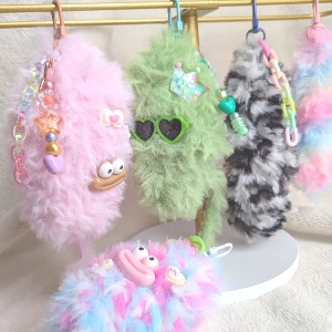 ふわふわとお顔のパーツ、そしてビーズを選ぶだけ。ふわふわはひとつひとつ編んでるからお気に入りを見つけて作ってみてください。